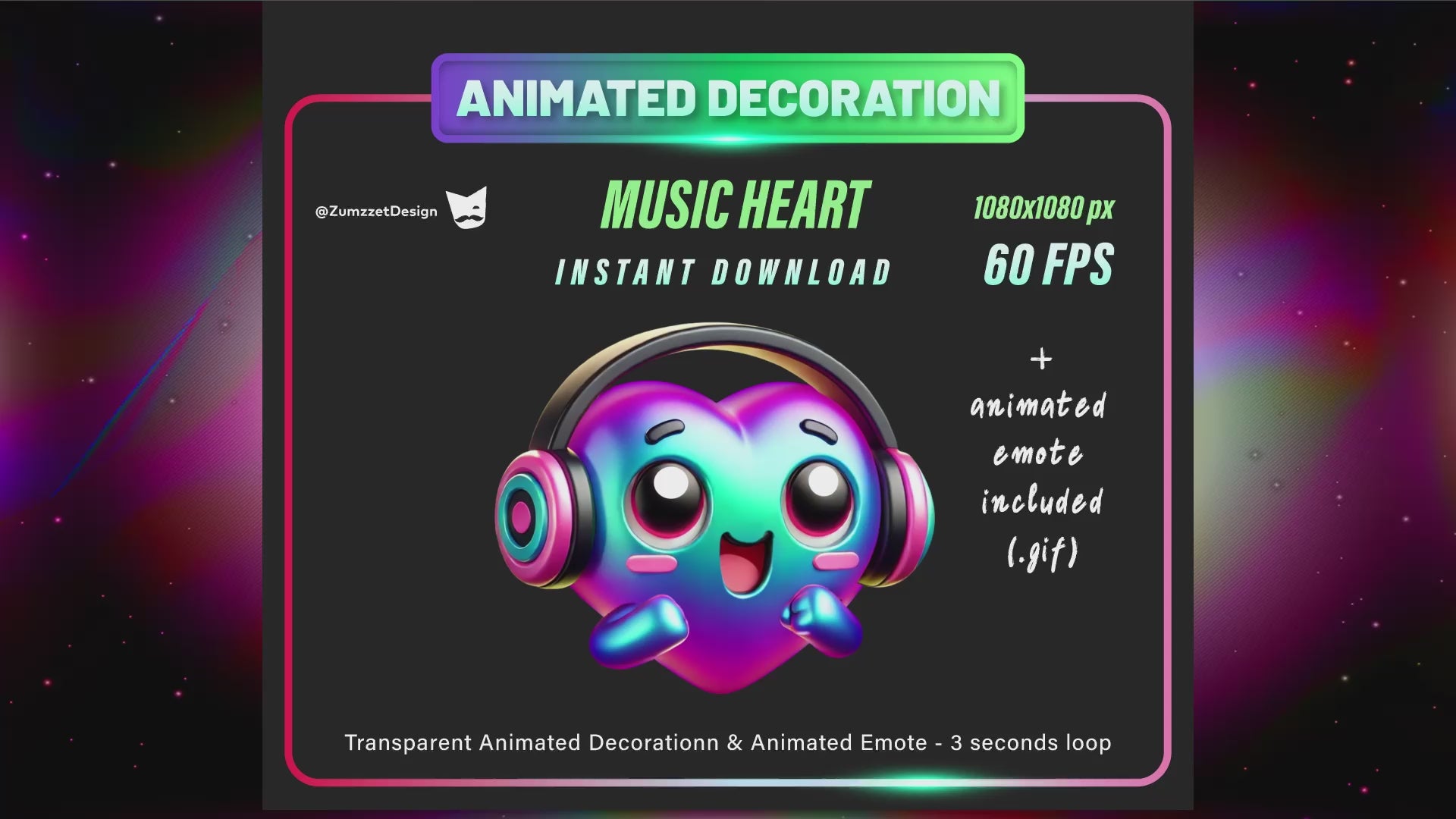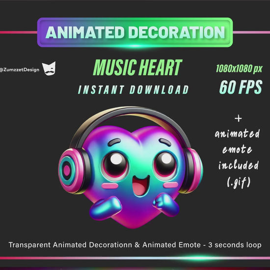 ANIMATED DECORATION and EMOTE Dancing Heart for Twitch, Techno Emote, Stream Emotes, Glowing Emote, Music Emote, Streaming Assets