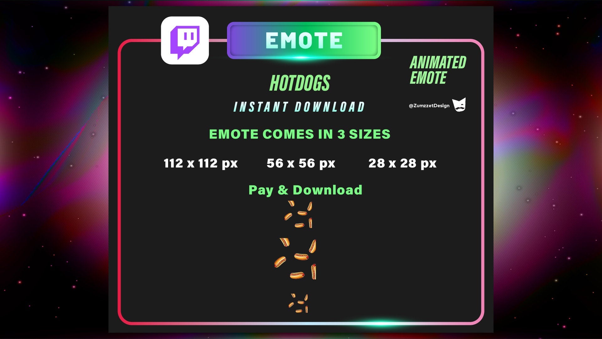 ANIMATED Raining Hot Dogs Emote for Twitch, Streamer, Gaming, Streaming, Stream Emotes, Gamer Emote