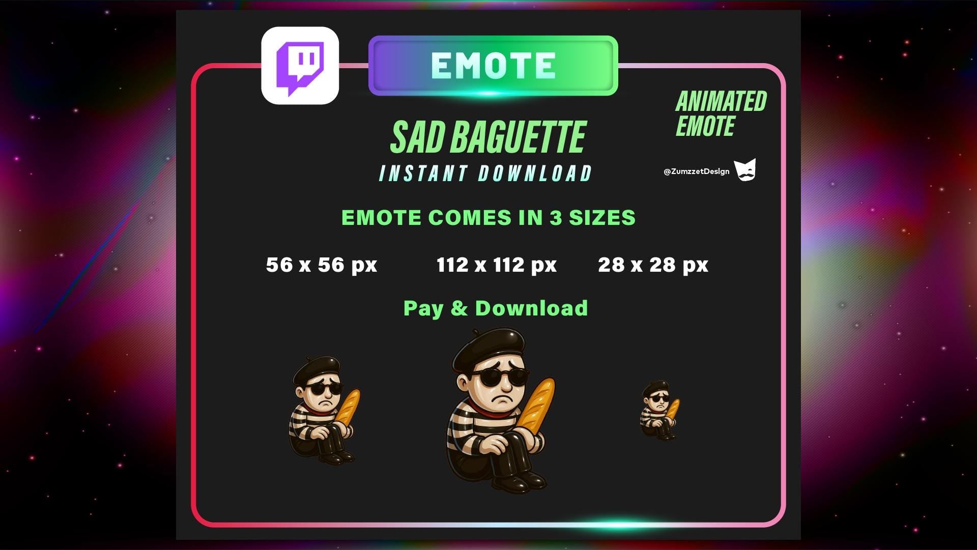 ANIMATED Sad French Mime Emote Twitch, Streamer, Gaming, Streaming, Stream Emotes, Reaction Emote, Sad Crying Emote