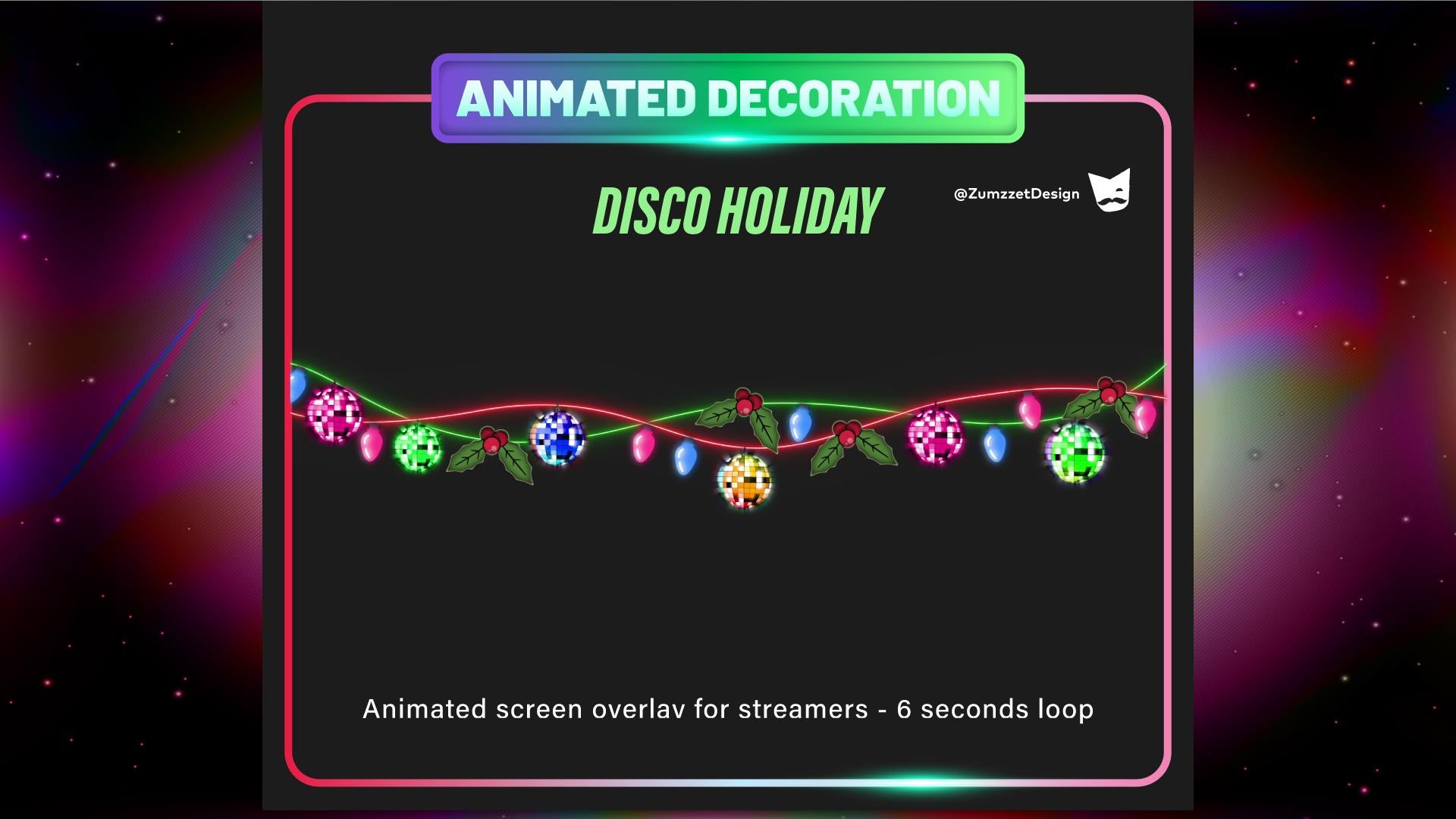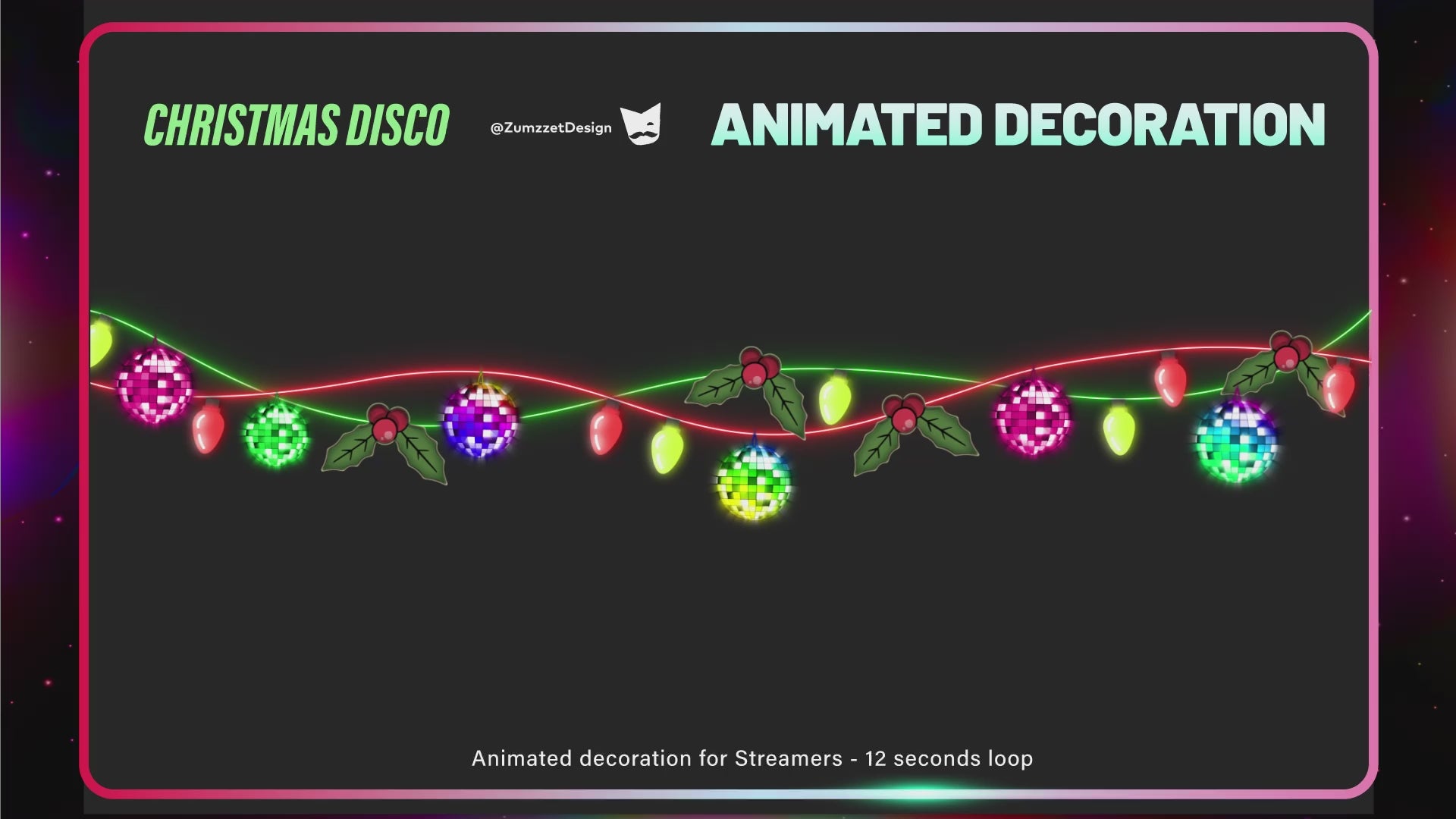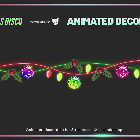 Disco Christmas Light Chains Animated Stream Decorations, Rave Party String Lights Twitch Overlay, Christmas Light Decoration for Streamers